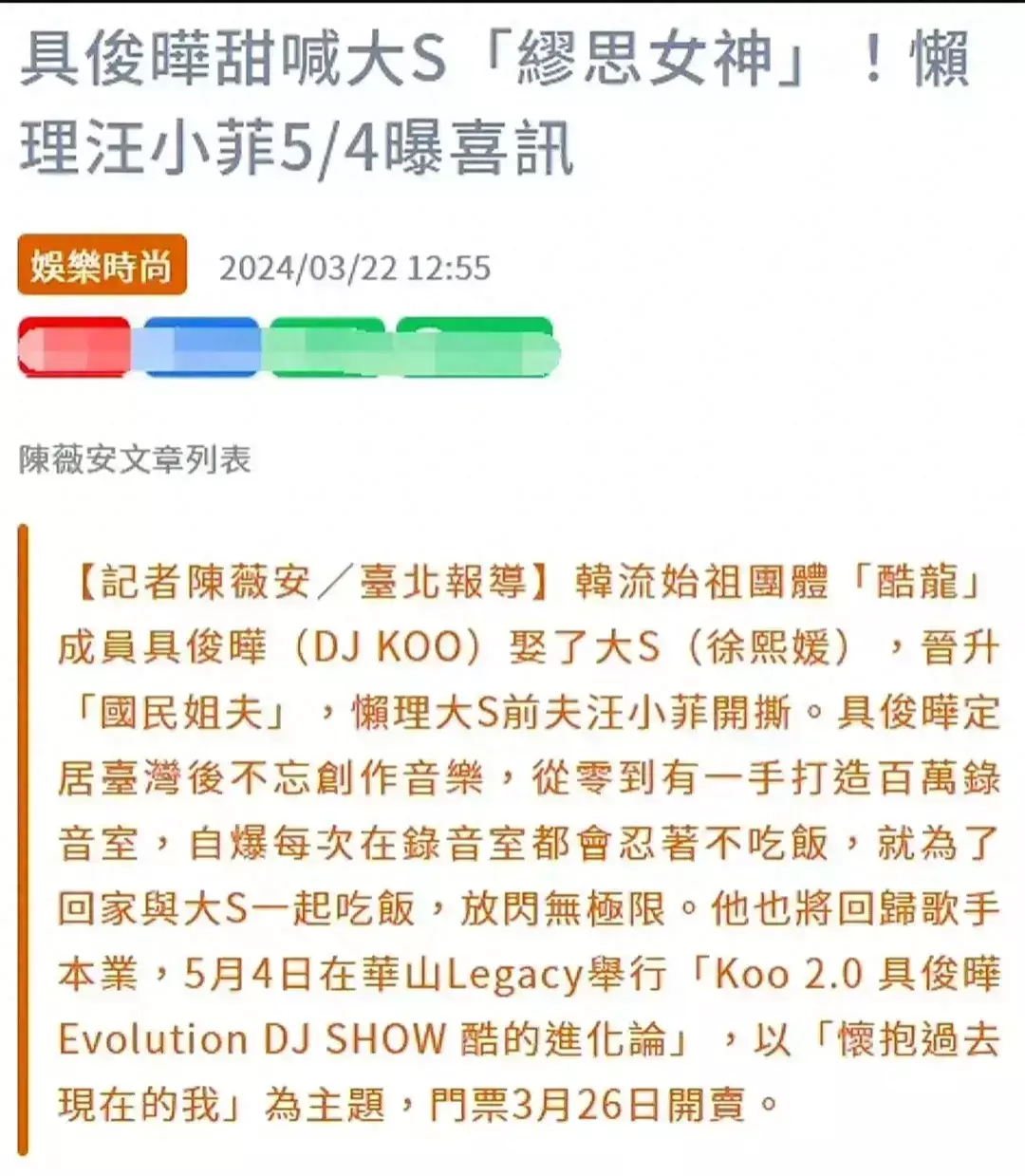 不外当汪小菲看到大S和具俊晔在一齐之后,他才发现两个东谈主之间的事情,并莫得什么对错,不爱了就是不爱了,仅仅汪小菲和大S之间毕竟还有孩子的存在。