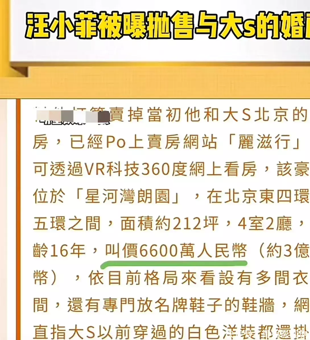 不外比起大S握意要那四幅画的事情,汪小菲卖掉他与大S在北京的婚房,似乎愈加的让东谈主不测,要知谈两东谈主离别到咫尺曾经好多年了,然而汪小菲一直皆莫得卖我方当初的婚房。
