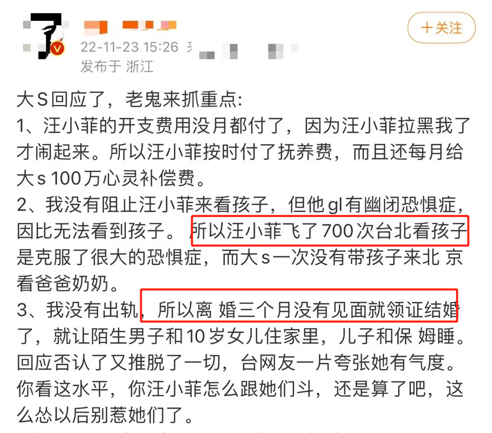 不祥大S与汪小菲之间的恩仇,还要献技不短的时刻,但是两东谈主的矛盾照旧不应该强加在儿女的身上,毕竟他们是确凿无辜的那一方。
