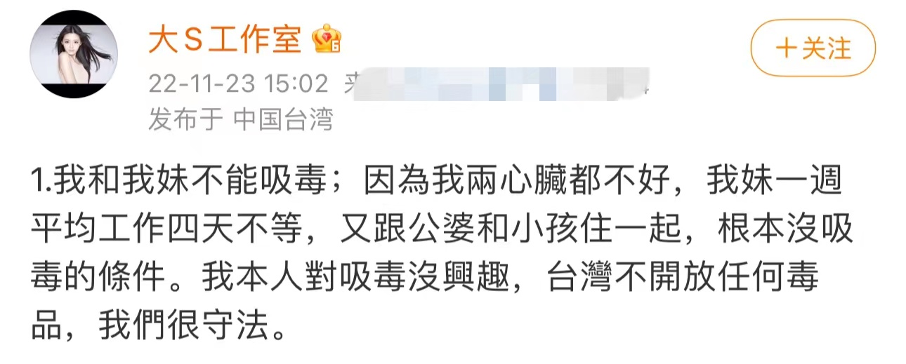 不外关于这些传奇,大S的牙东谈主亦然很快作念出了报告,并指出了汪小菲所说的一切皆是假的,我方曾经经协作检方进行了检测,仅仅检测的恶果却并莫得公之世人。