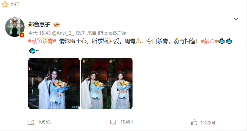 在珍惜郑合惠子联系音讯的时辰,网友们发现一件意旨的事情,本来除了《花间令》外,郑合惠子还友情客串一部剧,这部剧即是自带热度的《献鱼》。